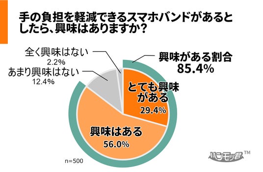 ●手が疲れないスマホバンドに興味津々な人は、85.4%