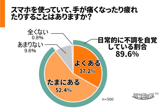 ・全世代の89.6%がスマホ使用による「手の疲れ・痛み」を実感・30代の約半数(54.5%)が「よく痛くなる」と回答。最も不調を感じている層