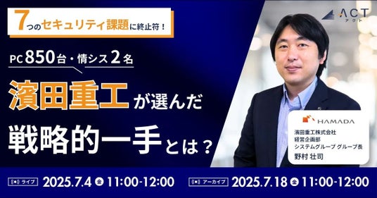 株式会社アクト(本社:東京都文京区、代表取締役CEO 小林 智彦 、以下 アクト)は、濱田重工株式会社(以下 濱田重工)が直面した複数のセキュリティ課題と、その解決に向けた戦略的な取り組みをテーマにしたセミナーを開催いたします。