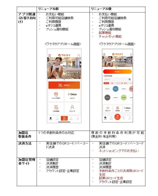 詳細は、下表の「ワケタラ」のリニューアル内容をご覧ください。
