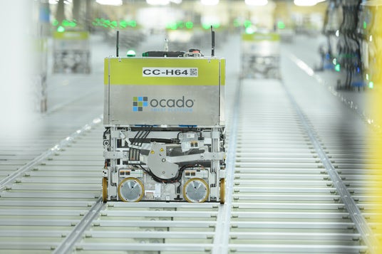 商品を収納したトートを持ち上げ、CFC内のグリッド(商品棚)上を走行しながら指定の場所まで運搬するロボットです。お客さまの注文に応じて、必要な商品が入ったトートを正確かつ迅速に搬送し、ピッキングやパッキング作業の効率化に対応します。
