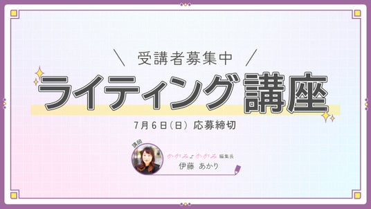 企業のコンテンツマーケティングやメディアビジネス等を支援するサムライト株式会社(本社:東京都港区、代表取締役社長:池戸 聡、以下「サムライト」)が運営するZ世代女性向けエッセイ投稿サイト「かがみよかがみ」が、この度エッセイ添削ライティング講座を開講いたします。 これまで20,000本以上のエッセイを読んできた編集長が、構成の考え方や文章の磨き方を丁寧に解説します。また、希望者にはエッセイ添削を実施し、さらに30分のオンライン個別相談も行います。