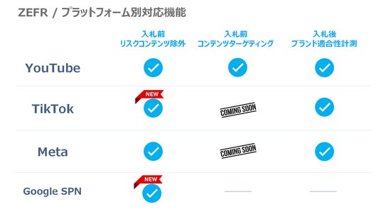 また、「ZEFR」はGoogleのSearch Partner Network(SPN)上でもプリスクリーン型のブランドセーフティソリューションの提供を開始しました。これにより、Google検索連動広告が表示される外部パートナーサイトにおいても、不適切なコンテンツをあらかじめブロックすることが可能となり、広告出稿におけるブランド保護の一貫性と精度が向上します。