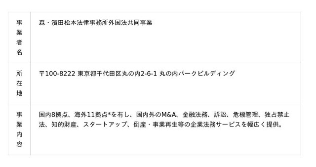■ 森・濱田松本法律事務所について( URL: https://www.morihamada.com/ )