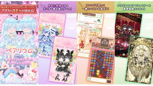 『恋するコーデ ペアリウム』は2021年10月27日に、iOS・Android両端末にてリリースした、恋愛ゲームとアバターゲームを融合させた恋愛アバターゲームです。豊富な種類のアバターアイテムを使って、自分だけのアバターコーデを作成し、着せ替えや他のユーザーとのコミュニケーション、また「結婚」「出産」というイベントを仮想空間で楽しむことができます。2025年5月に60万ダウンロードを突破し、累計40万人以上のゲーム内カップルが誕生しています。