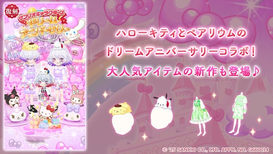 第2弾コラボガチャ「サンリオキャラクターズドリームアニバーサリー」が復刻登場します。