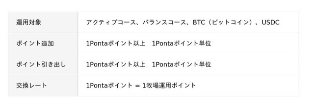 1ポイントから運用ができます。増減したポイントは、Pontaポイントに交換して利用可能です。