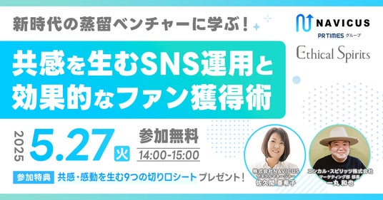 SNSを通じて企業様や地方自治体様のコミュニケーション支援サービスを提供する株式会社NAVICUS(本社:東京都千代田区、代表取締役:武内 一矢、以下:NAVICUS)は、2025年5月27日(火)に無料ウェビナー「新時代の蒸留ベンチャーに学ぶ!共感を生むSNS運用と効果的なファン獲得術」を開催しました。