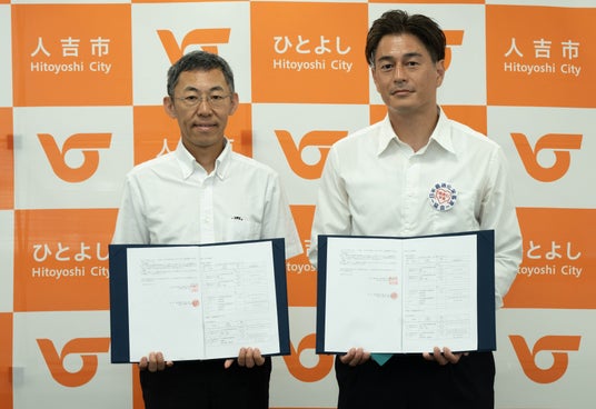 一般社団法人日本最適化栄養食協会(理事長:伊藤 裕)は、2025年6月29日に熊本県人吉市(市長:松岡 隼人)と「災害時における食料の調達支援協力に関する協定」を締結し、人吉市役所にて締結式を行いました。同時に防災施設等での備蓄食として認証製品4種類を合計約2,000食提供しました。