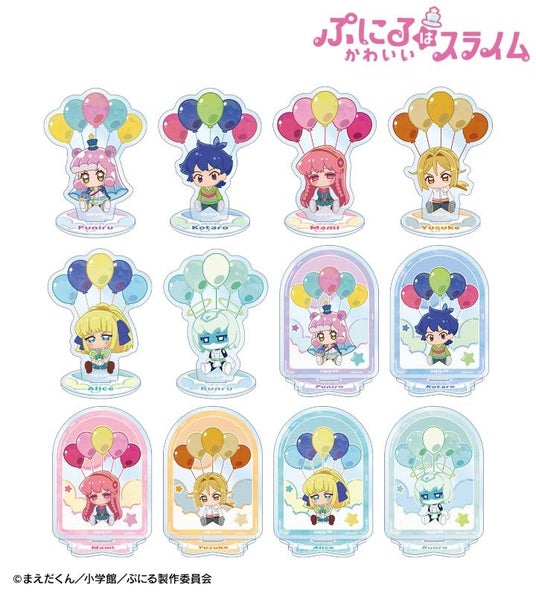 ぷにる、河合井コタロー、雲母麻美、南波遊助、御金賀アリス、ルンルのイラストをお空に風船でぷかぷかと浮いたぬいぐるみをイメージして描き起こし、アクリルスタンドに仕上げました。
