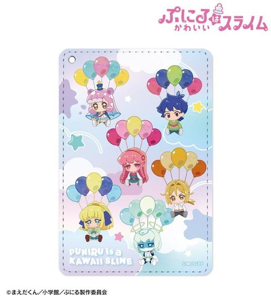 ぷにる、河合井コタロー、雲母麻美、南波遊助、御金賀アリス、ルンルのイラストをお空に風船でぷかぷかと浮いたぬいぐるみをイメージして描き起こし、1ポケットパスケースに仕上げました。