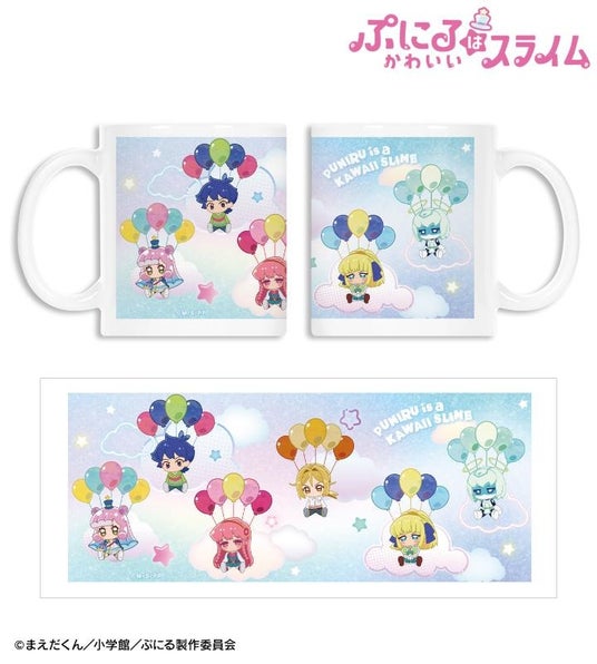 ぷにる、河合井コタロー、雲母麻美、南波遊助、御金賀アリス、ルンルのイラストをお空に風船でぷかぷかと浮いたぬいぐるみをイメージして描き起こし、マグカップに仕上げました。