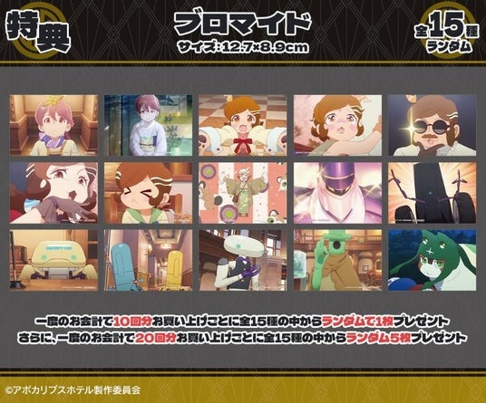 一度のお会計で10回分ご購入ごとに特典ブロマイド(全15種)の中からランダムで1枚、20回分ご購入ごとにランダムで5枚プレゼント!