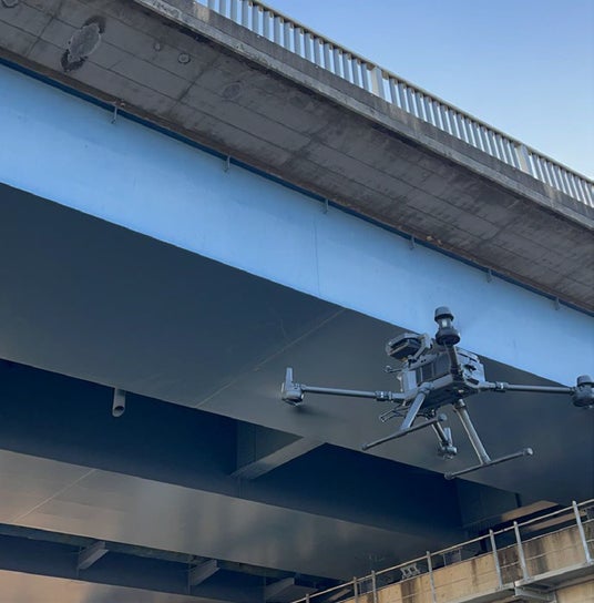Visual SLAM技術により橋梁下などGPS信号の届きにくい環境でも安定飛行・点検が可能。