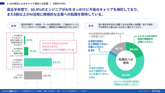 ・66.9%がAIの普及をきっかけに今後のキャリアを検討もしくは転職活動をしたと回答。