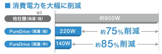 ※5: 他社機とは、ヒートポンプ式による据置型スポットクーラー(100V・1口タイプ)のこと。他社が公開しているスペック表記載の消費電力を元に算出。