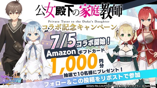 『公女殿下の家庭教師』と『マギマルと魔法使いの学園』のコラボを記念し、Amazonギフトカード1,000円分が抽選で10名様に当たるキャンペーンを開催しております!ぜひ奮ってご応募ください。