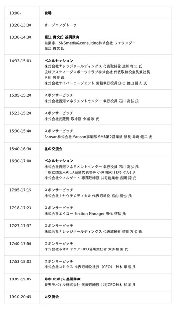 本カンファレンスは、「展示会」「ビジネスカンファレンス」「交流会」の3つを構成したビジネスイベントです。実業家の堀江貴文氏や楽天モバイル代表取締役 共同CEOの鈴木氏の基調講演などを通じ、AIを活用した業務自動化の最新トレンドを紐解き、企業がどのように導入・活用すべきかを、具体的な事例とともに紹介します。過去の実績から、参加者の半数以上が経営者となる予測であり、同日2回開催される大規模交流会での参加者同士の出会いと対話から、次のビジネスの一手が生まれることを目指しています。