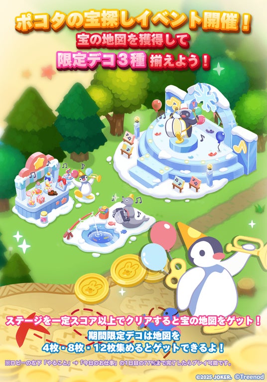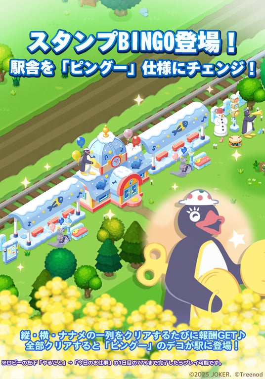期間限定で、『ピングー』をモチーフとしたコラボオリジナルの屋外デコが12種類、駅デコ6種類、休憩所デコが3種類登場します。金魚すくいで「トイメダル」を集め、カプセルトイを回してイベントをクリアすることで入手可能です。