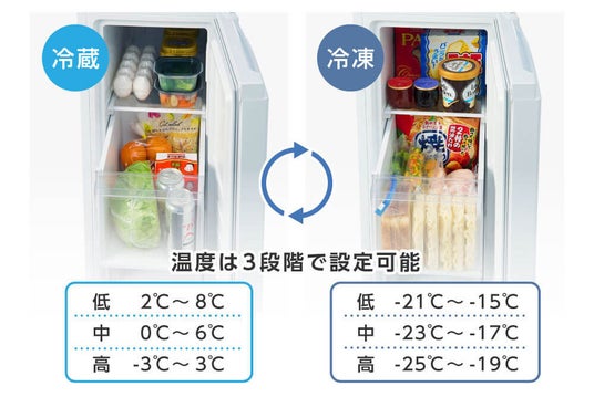 温度調整だけでなく、冷蔵モードと冷凍モードを自由に切り替え可能です。