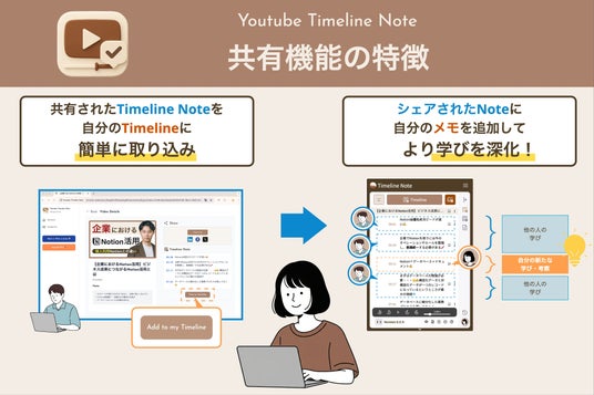 深い学習体験の実現:他の人のノートを簡単に自分のTimeline Noteとしてインポートできるため、他の人のノートにさらに自分のメモを追加し、インプットの質をより深めることが可能になります。