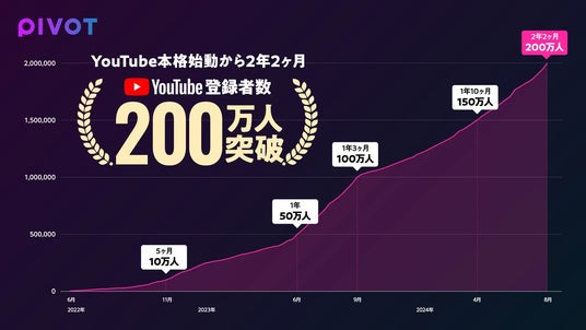 ビジネスYouTubeチャンネル「pivot」のチャンネル登録者数が200万人を突破(引用:https://prtimes.jp/main/html/rd/p/000000034.000083417.html)