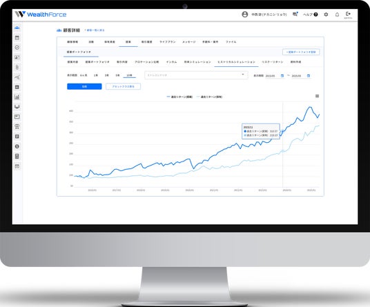 資産運用領域に特化したCRM機能、顧客資産自動取得機能、運用提案機能を搭載。顧客管理からリアルタイムでの資産状況の分析、顧客毎の最適資産配分決定、提案書の出力までを一元サポートし、IFA向け導入実績では国内No.1(当社調べ)を誇ります。