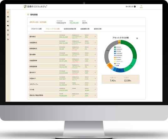 個人投資家向けに、資産情報の管理・分析、アドバイザーの紹介・相談、金融情報メディアなどをワンストップで提供するサービスです。金融機関のログイン情報を安全にお預かりし、定期的または手動で最新の資産情報を取得・反映できる口座連携機能にも対応しています。