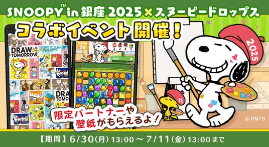 爽快パズルゲーム『スヌーピードロップス』にて、「スヌーピー in 銀座 2025」とのコラボイベントを今年も開催します。