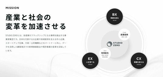 スタジオゼロは、「産業と社会の変革を加速させる」をミッションとした事業家集団です。各産業のフラッグシップとなる事例を創出するべく、日本を代表する大企業や地域経済を支える中小企業、スタートアップ企業、行政・公的機関などのパートナーとともに、データを活用した顧客視点での新規事業創出や既存事業の変革を目指しています。