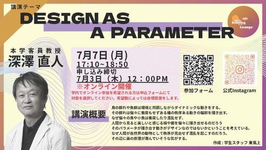 以下のURLから、【7月3日(木)12:00までに】お申し込みください。【7/7(月)イブニングラウンジ オンライン開催】深澤 直人様/ [Mon. July.7 Evening Lounge Online Session] Visiting Professor FUKASAWA Naoto - 【公式サイト】広島県公立大学法人 叡啓大学