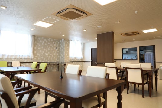 当館は和モダンをコンセプトに落ち着いた住空間を目指して設計された新築物件です。通常の居室機能はもちろんのこと、全室にナースコールを設置、夜間ふくめた見守り体制で入居者様の生活をサポートいたします。その他設備として車いすでも入れるトイレや洗面台を設置。入浴設備に関しても2つの個人浴室に加え機械浴槽を完備。また、居室数を21室に限定。入居者様お一人おひとりにきめ細やかなケアを提供できる環境を整えています。
