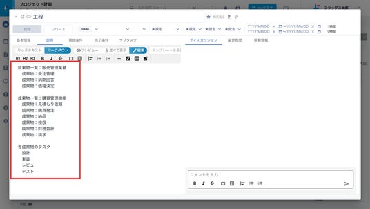 1. 単票の説明欄に、作成したいWBS の情報を記載します