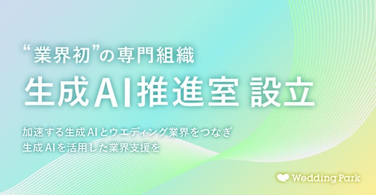 株式会社ウエディングパーク(本社:東京都港区、代表取締役社長:日紫喜 誠吾、以下ウエディングパーク)は、社会において加速度的に進化を続ける生成AIの可能性をウエディング業界へ広げていくために、業界初※の専門組織「生成AI推進室」を本日設立いたしました。