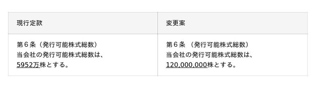 ※2025年7月11日付で、変更案の発行可能株式総数を120,000,000株から119,000,000株に訂正いたしました。