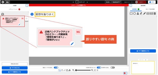 この新機能により、統合報告書やニュースリリースなど企業の各種発行物の記載内容の正確性を高め、より伝わりやすい正しい日本語の文章にする校正・校閲業務の効率化を支援します。