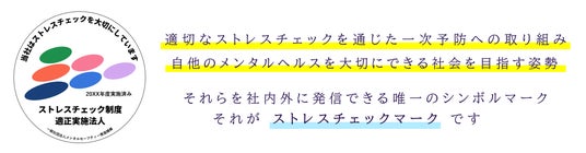 一般社団法人メンタルセーフティー推進機構(代表理事:西 規允、以下「当法人」)は、労働安全衛生法および厚生労働省の指針・マニュアルに準拠したストレスチェック制度を適正に実施し、自己評価を行った事業者に対し、当法人が定める「ストレスチェックマーク(R)」の使用を認める新たな取り組みを開始しました。