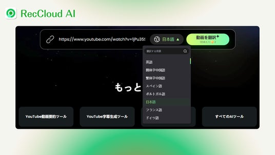 AI動画・音声処理プラットフォームであるRecCloudは、この度、YouTube動画の字幕を90言語以上に翻訳できるオンラインツール「YouTube動画翻訳ツール」を公開しました。URLを入力するだけで、海外の動画コンテンツを手軽に理解できる環境を実現します。