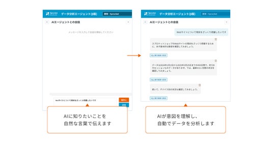 CX改善プラットフォームを提供する株式会社Sprocket(本社:東京都品川区、代表取締役:深田 浩嗣)は、生成AIとの対話により、専門知識なしで高度なデータ分析を可能にする新ソリューション「データ分析エージェント」をβ版として提供開始します。「データ分析エージェント」は、AIが人の代わりに複雑な作業を自律的に実行する、SprocketのAIエージェントシリーズ「SproAgent(スプロエージェント)」の第一弾プロダクトです。