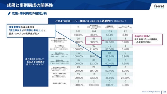 「受注率の向上」「商談化率の向上」といった営業フェーズでの成果は、構成次第で差がつく結果に。