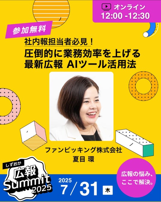広報・PR・AI領域で実績を持つファンピッキング株式会社(本社:静岡県浜松市、代表取締役:夏目 環)は、2025年7月31日(木)に静岡新聞社・静岡放送主催で初開催される「しずおか広報Summit2025」に登壇いたします。