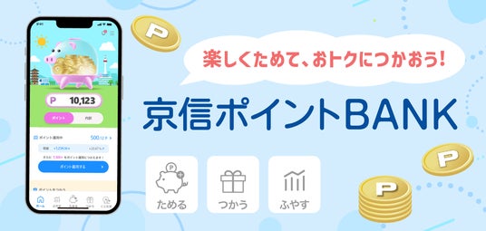 「京信ポイントBANK」は、当金庫のポイントを「ためる」「つかう」「ふやす」ことができるポイントアプリです。