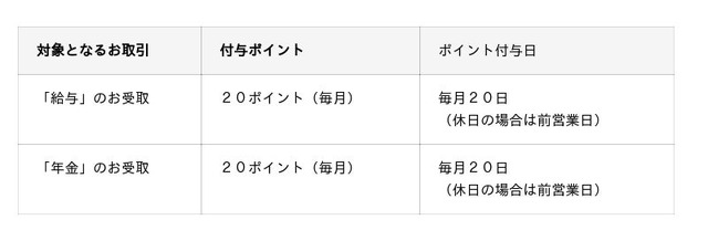 本日以降、当金庫の口座で「給与」や「年金」をお受け取りいただいており、かつ「京信ポイントBANK」のアプリをご利用中の方には、毎月自動的に特典ポイントが付与されます。