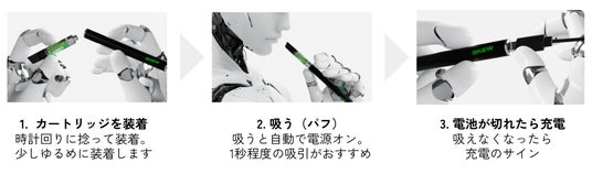 skewヴェポライザー(本体)に、CBDリキッド(カートリッジ)を装着することでご使用いただけます。