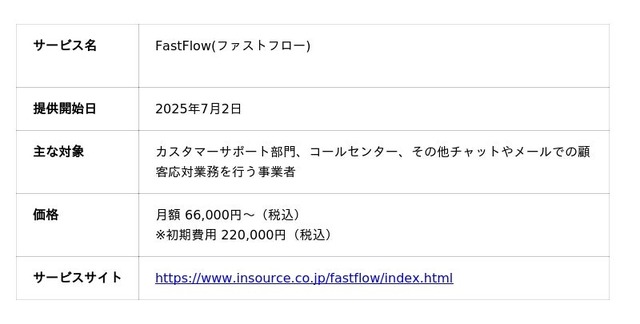 近年のカスタマーサポート業務では、従来の電話に加え、チャットでの問い合わせを希望する顧客が急増しています。企業は限られた人材で応対品質を維持・向上させるという課題に直面しており、「応対の属人化」や「新人教育のコスト増加」などが経営課題となっています。 この課題を解決するため、MONO BRAINは独自のAI技術を用いて、問い合わせ内容を瞬時に読み取り、最適な回答案を自動生成するツール「FastFlow」を開発しました。この度のインソースとの提携により、同社の強みである顧客対応部門向けの教育・コンサルティングサービスと「FastFlow」を組み合わせ、より多くの企業の生産性向上に貢献できると確信しております。