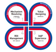 「HAUS UPDATA」は、電通が提唱する、事業グロースのための次世代マーケティングモデル「Marketing For Growth」の4つのプロセスのうち、「Value Designing(価値構造設計)」「360° Experience(体験設計実装)」に該当するサービスです。