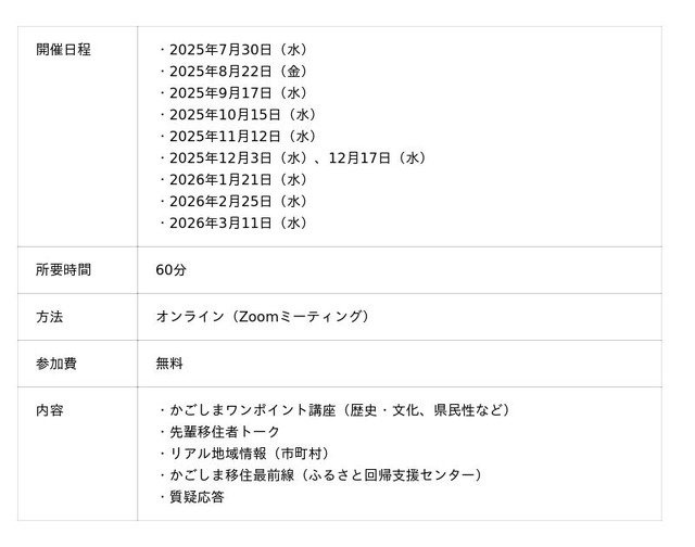 株式会社みらいワークス(本社:東京都港区、代表取締役社長 岡本 祥治、以下「当社」)は、鹿児島県より「令和7年度移住・交流促進のためのセミナー開催業務」を受託したことをお知らせいたします。今後、当社は、移住に関心のある都市部や鹿児島県外の人々に対して、オンラインおよび対面形式のリアルセミナーを実施し、鹿児島県への移住・交流の促進に貢献してまいります。