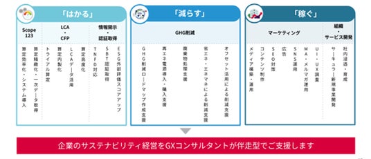 ・Scope3算定支援、LCA/CFP算定支援、社内浸透、脱炭素マーケティング支援 など