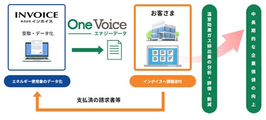 本業務協定は、インボイスが提供するエネルギー使用量のデータ化サービス「OneVoiceエナジーデータ」によるScope1・2のGHG排出量算定支援と、脱炭素DXカンパニーが提供する温室効果ガスの「はかる」「減らす」「稼ぐ」の3領域を軸とした企業の脱炭素経営支援を組み合わせることを目的としたものです。