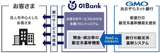 GMOあおぞらネット銀行株式会社(以下、当社)は、株式会社池田泉州ホールディングスの100%子会社である01銀行株式会社(以下、01Bank)が目指す「安心・安全」「フレキシビリティ」「ローコスト」で「質の高いUI/UX」を提供する「データドリブン型(*2)」の銀行システムの運営に貢献するため、BaaS型で、預金や融資、審査分析などの銀行機能を提供しています。